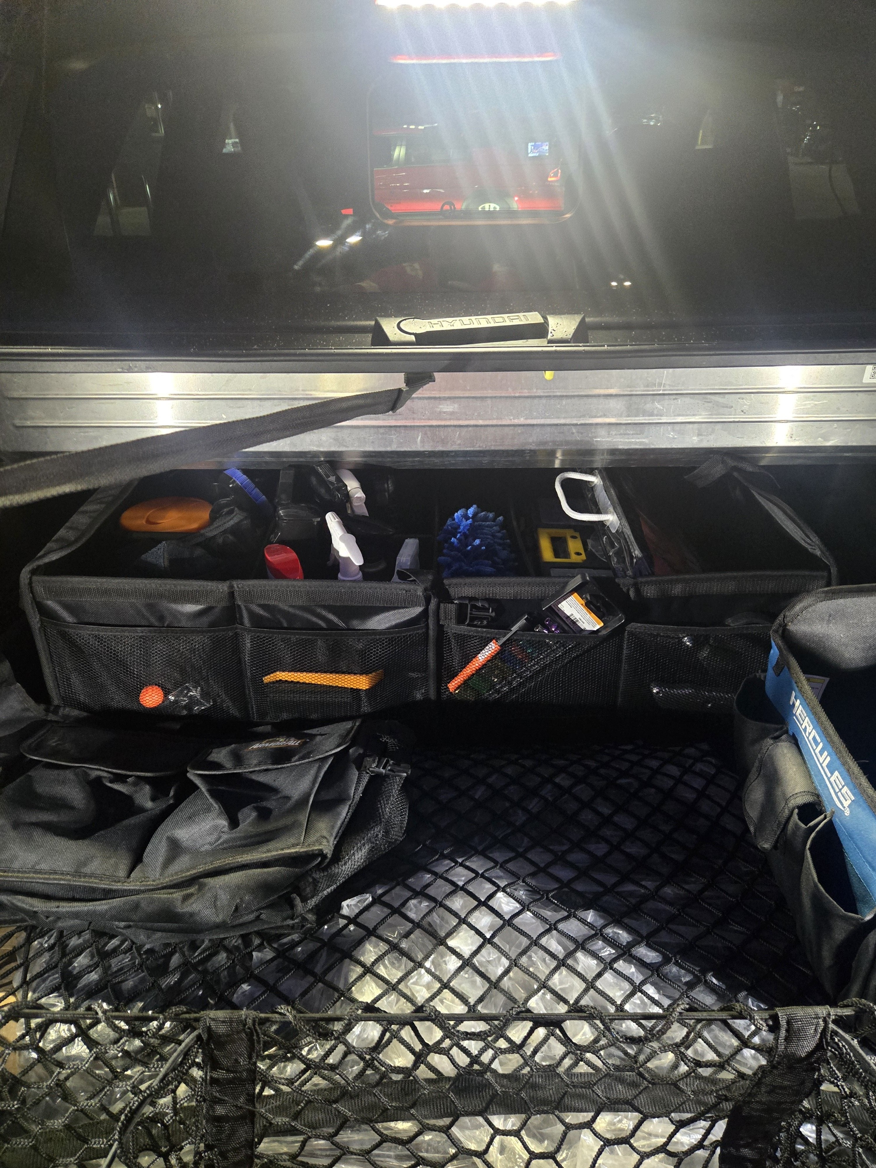 Got a great organizer for my truck bed. It fits under the tonneau cover for efficiency, I deliver for Amazon flex and some boxes won't fit under. Search for TRUNKCRATEPRO on Amazon if you're interested.